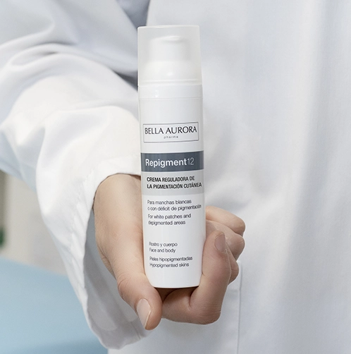 Repigment12 Plus es un tratamiento que ayuda a recuperar el tono natural de la piel con manchas blancas o con déficit de pigmentación.